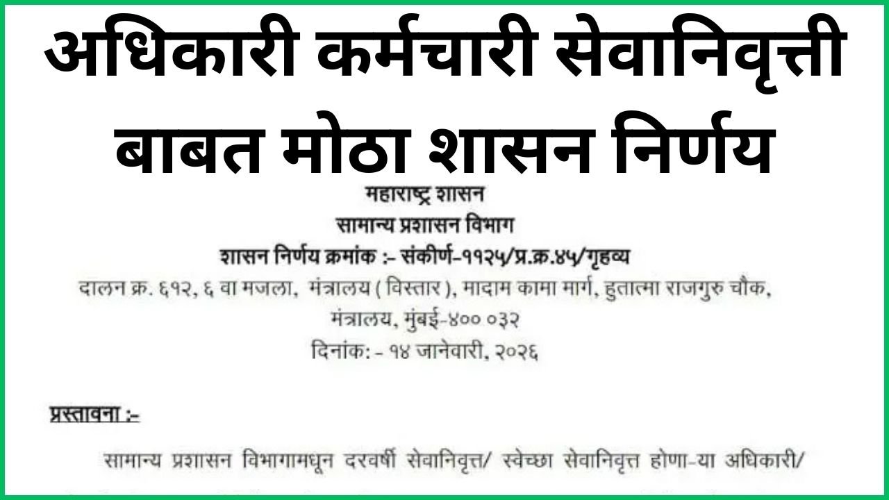 राज्य शासकीय अधिकारी, कर्मचारी सेवा निवृत्ती बाबत महत्त्वाचा शासन निर्णयState Employees Retirement GR