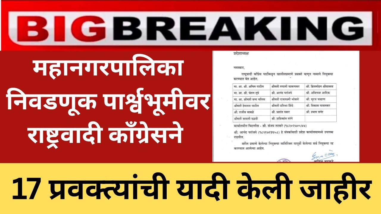 महानगरपालिका निवडणूक पार्श्वभूमीवर राष्ट्रवादी काँग्रेसने १७ प्रवक्त्यांची यादी जाहीर New list of Nationalist Congress Party spokespersons
