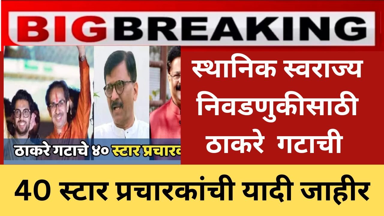 स्थानिक स्वराज्य निवडणुकीसाठी ठाकरे गटाच्या 40 स्टार प्रचारकांची यादी जाहीर ! Uddhav Thackeray Star Campaigners Election 2025