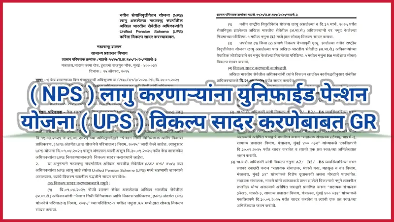 नविन सेवानिवृत्तीवेतन योजना ( NPS ) लागु करणाऱ्यांना युनिफाईड पेन्शन योजना ( UPS ) विकल्प सादर करणेबाबत GR निर्गमित दि.25.08.2025 UPS Pension Scheme 2025