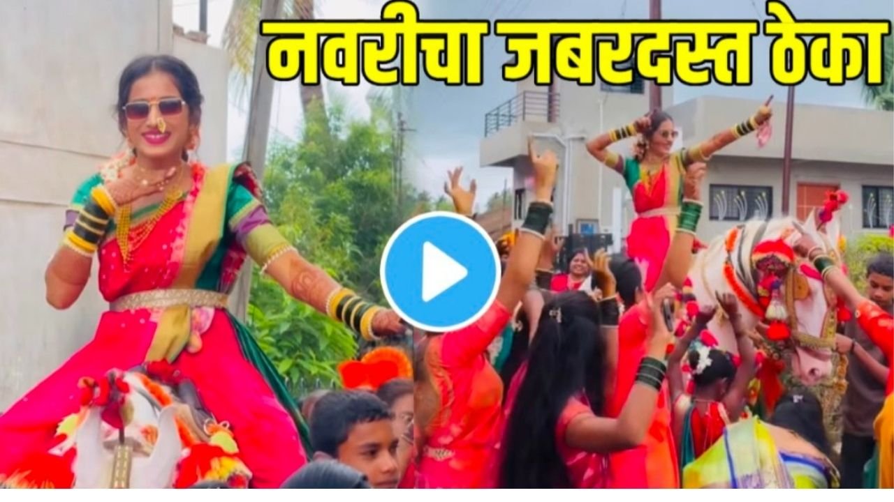 याला म्हणतात मराठी मुलींचा ठसका; हालगीच्या तालावर घोड्यावर बसून नवरीचा जबरदस्त डान्स; VIDEO होतोय व्हायरल | Bride dance Viral video